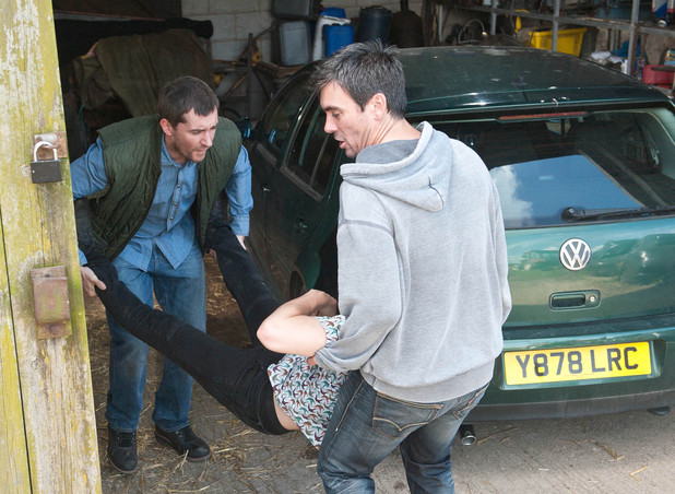 When Brad offers Finn a drink in The Woolpack, he puts his evil scheme into action by secretly spiking it with drugs. Once Finn is feeling woozy, Brad takes advantage of his vulnerable state by kidnapping him.