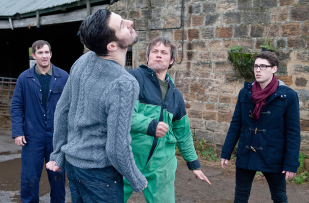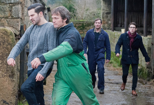 "Great fun - it always is, isn't it? A bit of violence in these shows is always quite fun! (Laughs.) We had a fight director there who was brilliant. What was interesting about it was that Ross really has a go at James verbally. Ross says that everything that's going wrong in the family is James's fault. That pricks James's conscience, but it's also a direct attack on his worthiness as a dad and a farmer. That's why James hits him. It's not premeditated."
