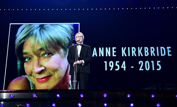 William Roache pays tribute to Anne Kirkbride during the 2015 National Television Awards at the O2 Arena, London