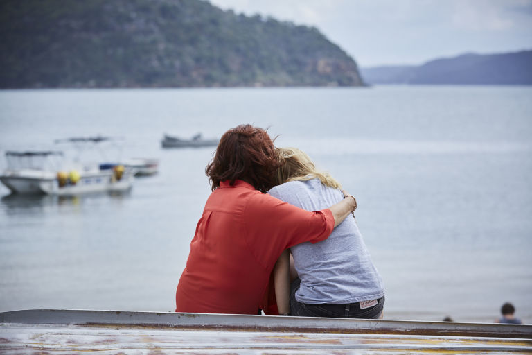 Irene Roberts comforts Olivia Fraser Richards in Home and Away