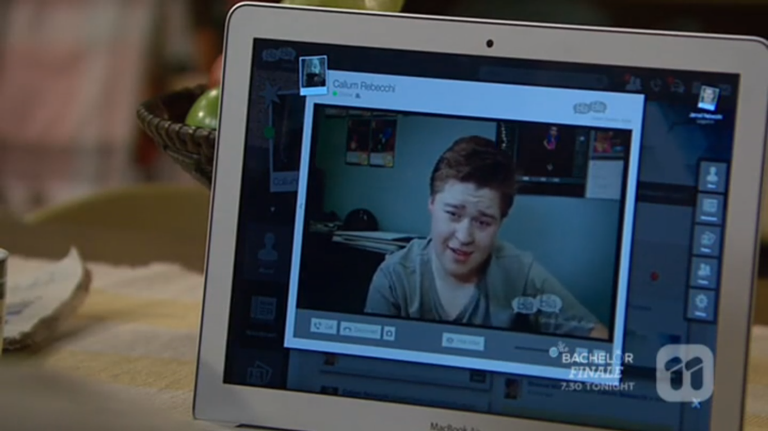 The scene showed Callum interacting with Toadie, Sonya and Karl Kennedy from the comfort of his bedroom in the US.