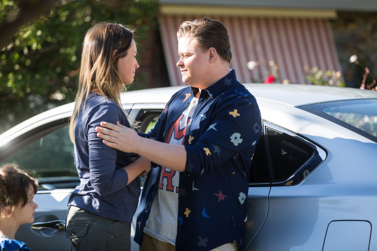 Morgan Baker reprised his role as the teen character in today's Australian episode as he caught up with his family in an online video call.